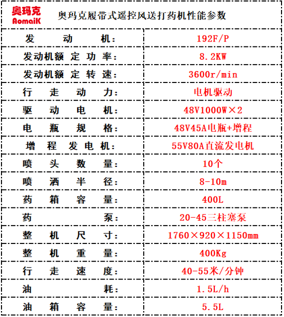 AMK履带式遥控风送打药机是一种远程遥控、风送喷雾、高效安全的现代化植保设备。