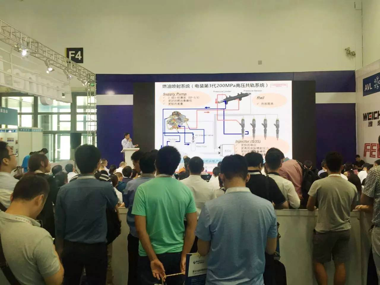 图为:电装 (中国)投资有限公司高级经理邓建光做国6柴油发动机高压共轨系统演讲