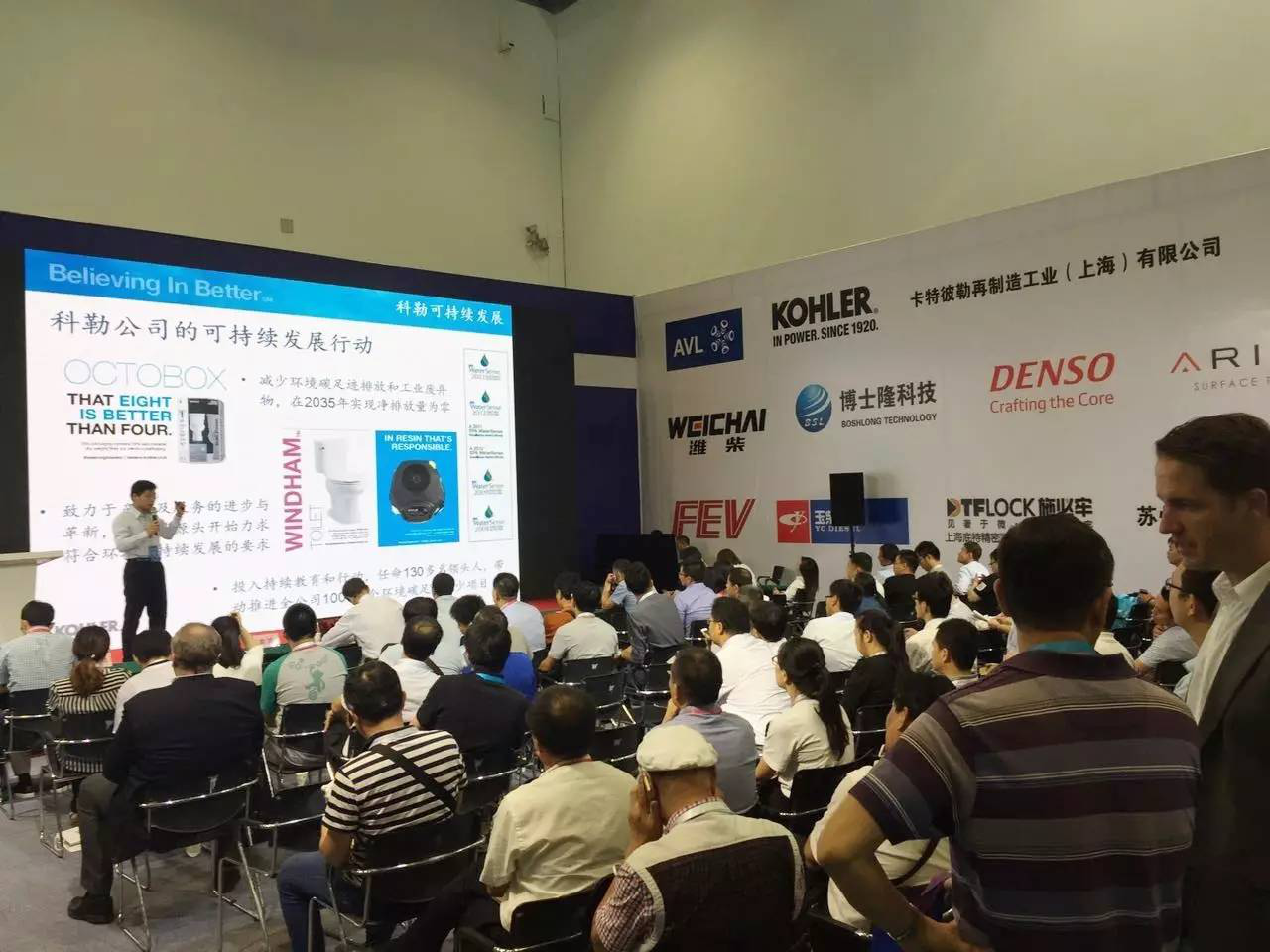 图为:科勒 (中国)投资有限公司高级市场经理董重青做深信世界更美好演讲