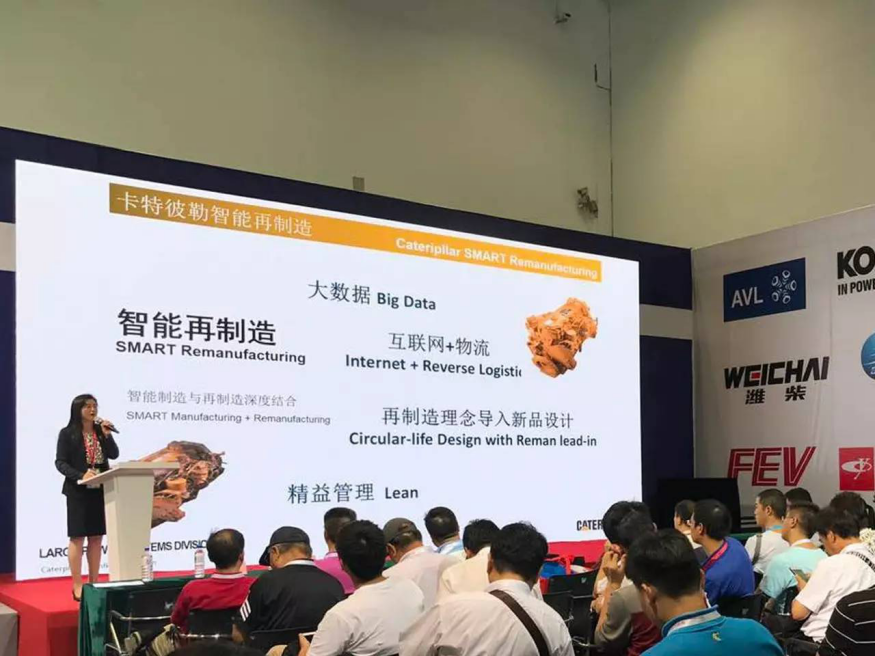 图为:卡特彼勒再制造工业(上海)有限公司对外事务经理王珊做可持续发展推动者 —卡特彼勒再制造演讲