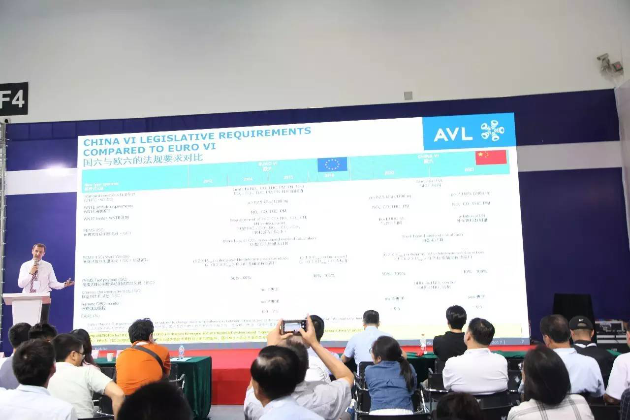 图为: AVL李斯特公司商用柴油机开发实验部门经理Graf Gernot做国VI排放开发所面临的挑战—何应对从实验台测试满足排放转向现实实际使用中的排放合规性的转变演讲